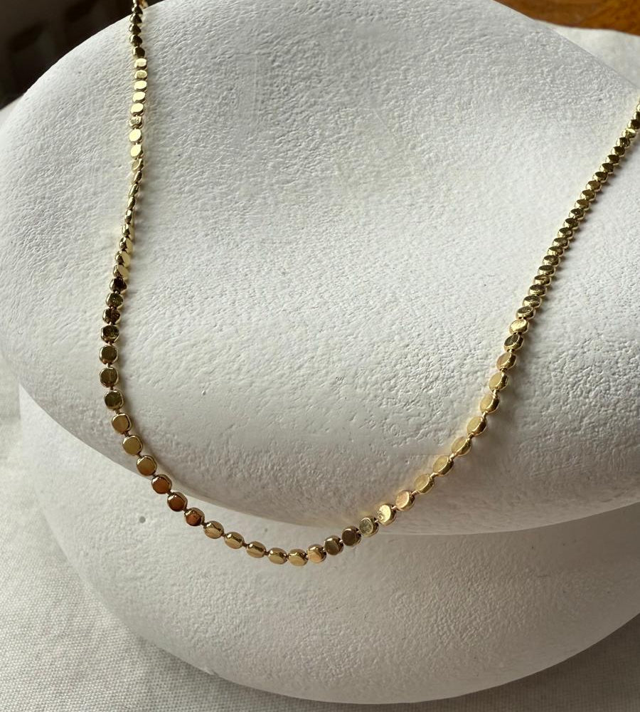 Minimalist şıklığın en sade ve en etkileyici hali: Altın Renk Daire Formlu Plaka Detaylı Kolye.
