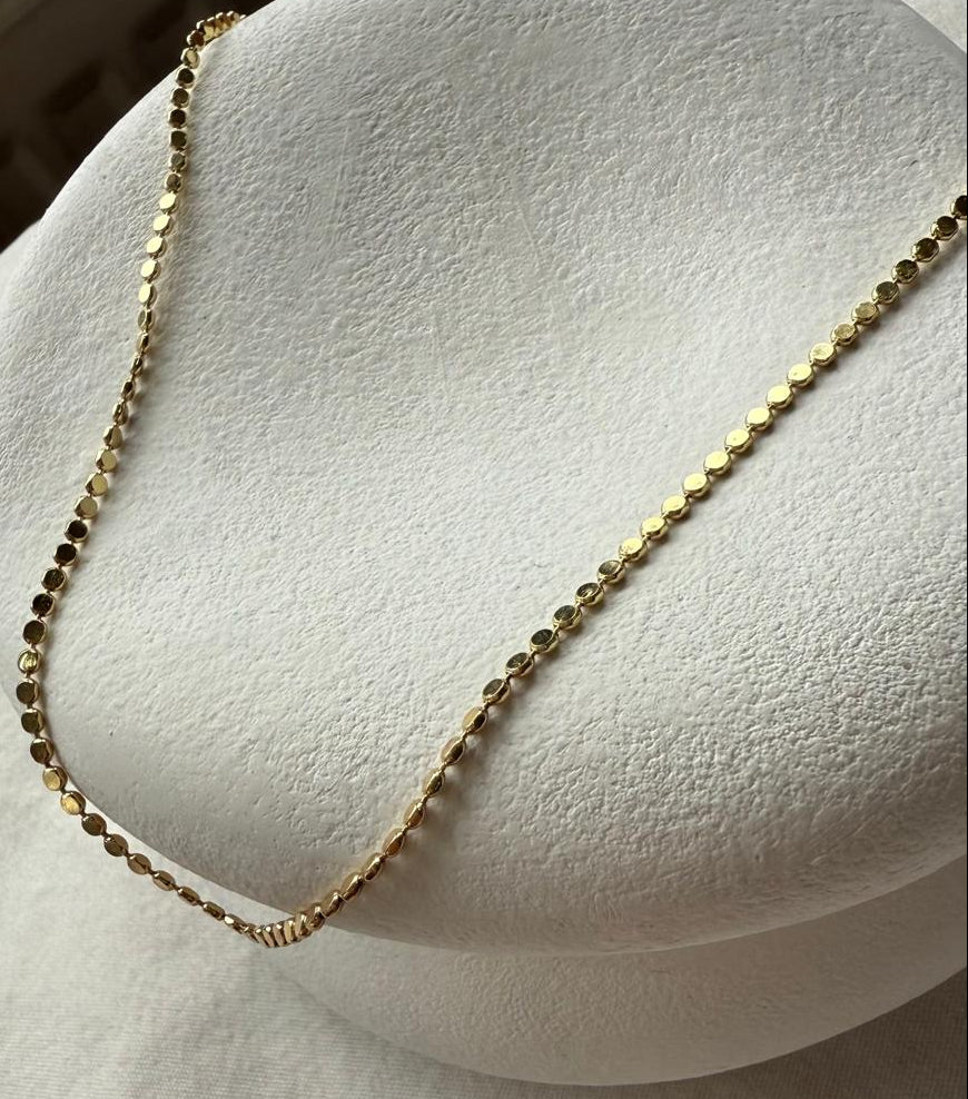 Yuvarlak mikro plaka halkalardan oluşan bu modern tasarım, ışığı her açıdan yansıtarak boyunda ince, elegant ve zarif bir ışıltı oluşturur.