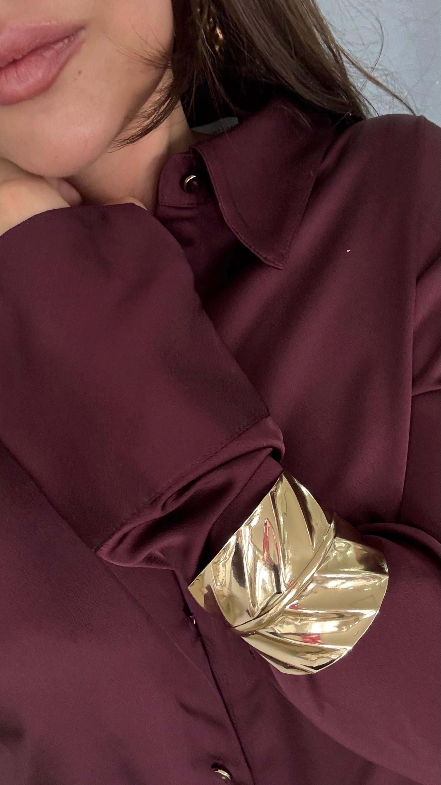 Organik kıvrımları ve dokulu yüzeyiyle ışığı her açıdan farklı yansıtarak güçlü bir stil etkisi yaratır. Tek başına bile görünümünüzün odak noktası olacak kadar iddialı.