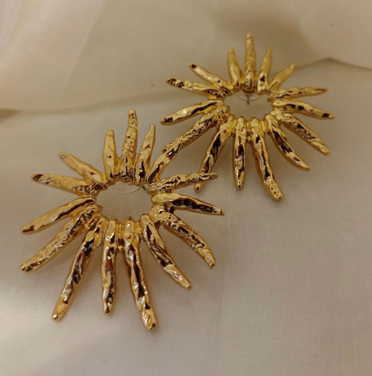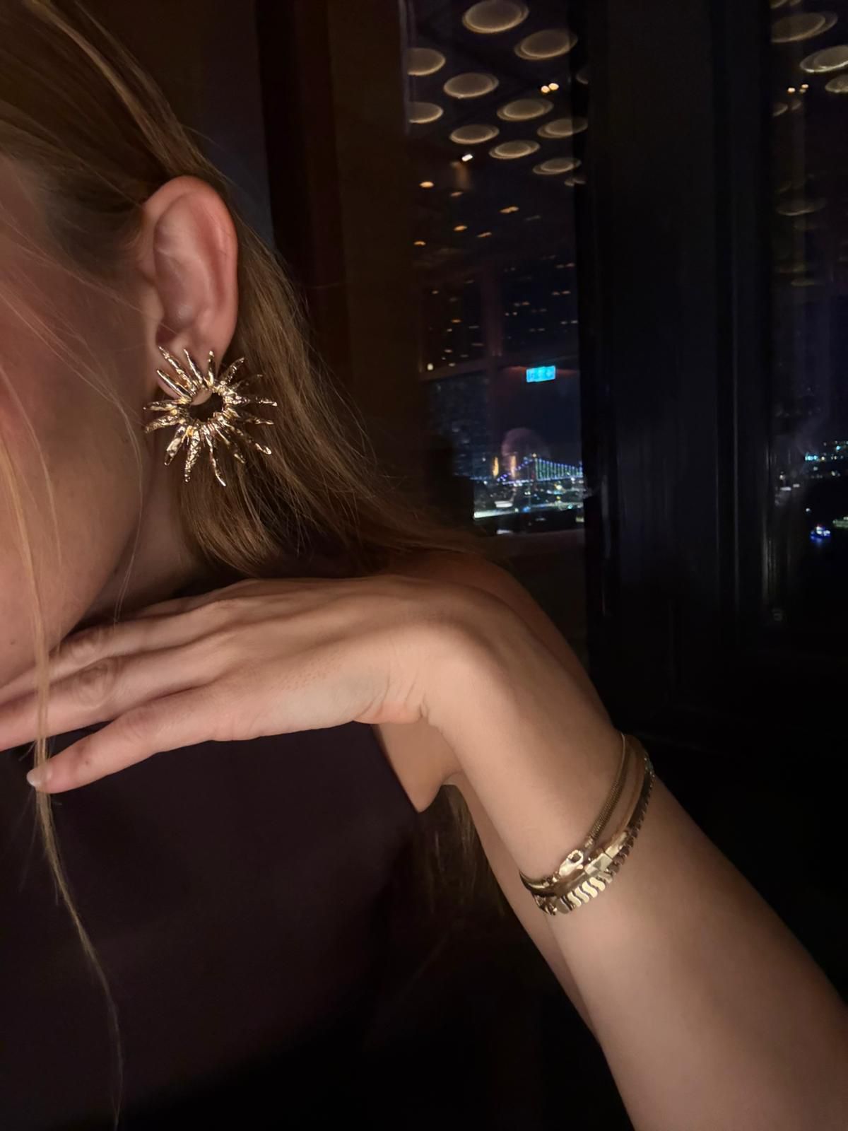 El işçiliği dokulu Sunburst küpeler; minimal bir şıklığı, iddialı bir duruşla buluşturur.