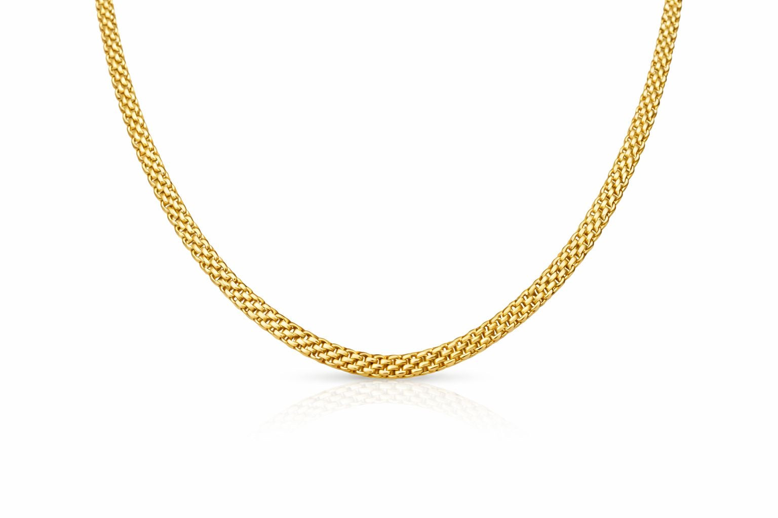 Luna Gold Örgü Zincir Kolye, klasik zincir formunu modern ve premium bir dokunuşla buluşturur. Işığı mükemmel yansıtan özel örgü yapısı sayesinde boyunda güçlü ve sofistike bir duruş sağlar.